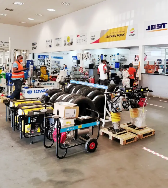 L’équipe de notre showroom de Port-Gentil est ravie de vous recevoir pour vous présenter nos produits industriels, forestiers, hydrauliques et automobiles / poids lourds. Bénéficiez des conseils avisés de nos conseillers pour sélectionner le matériel qui répond au mieux à vos besoins, en accord avec votre budget.